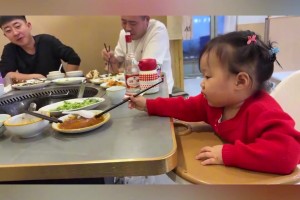 宝宝偷沾酱汁尝味,爸爸细心关注
