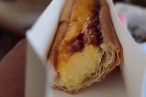 男子买超长蛋挞,吃两口就腻到吃不下