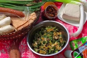 女子和朋友野餐,只吃煎饼卷大葱